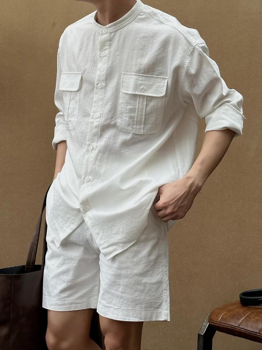 - Sản phẩm: Áo đũi nam cổ trụ 2 túi cúc áo sơ mi cổ tàu VESCA